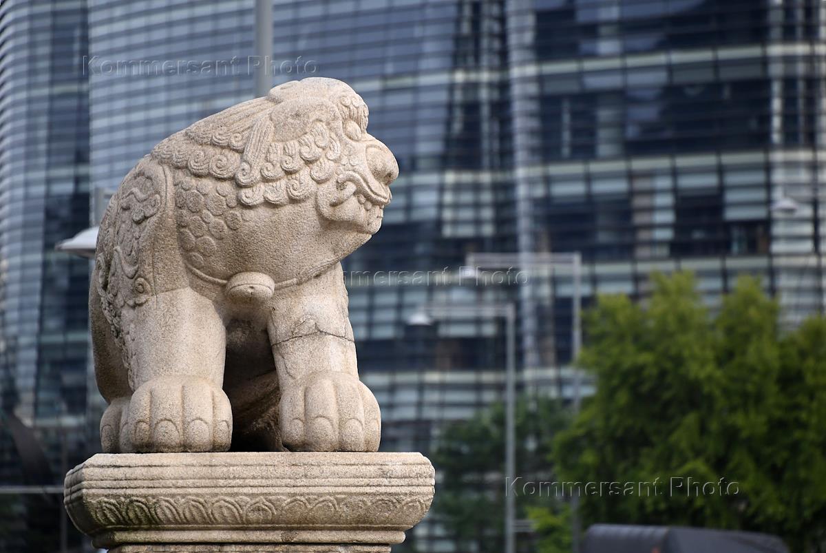 Виды Сеула. Жанровая фотография. Скульптура льва.