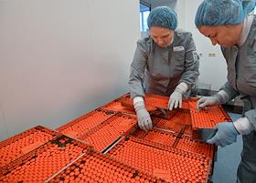 Российская фармацевтическая компания "Герофарм". Производство вакцины "ЭпиВакКорона" на площадке завода в Оболенске.