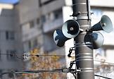 Жанровая фотография. Столб городского освещения и репродукторы громкоговорителя.
