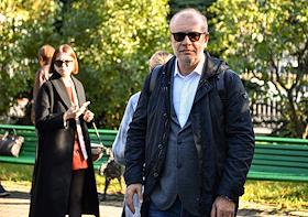 Заседание по делу советника главы "Роскосмоса", бывшего журналиста газеты "Коммерсантъ" Ивана Сафронова в Московском городском суде. Адвокат Дмитрий Талантов у здания суда.