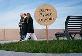 Виды Москвы. Жанровая фотография. Табличка на набережной "Здесь будет дерево".