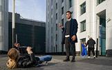 Виды Москвы. Жанровая фотография. Девушка-фотограф фотографирует парня, лежа на спине на асфальте.