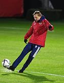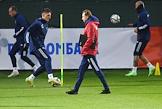 Открытая тренировка сборной России по футболу, посвященная подготовке национальной сборной к отборочным матчам чемпионата мира 2022 года со Словакией и Словенией, в УТЦ "Новогорск". Главный тренер сборной России по футболу Валерий Карпин (в центре) во время тренировки.