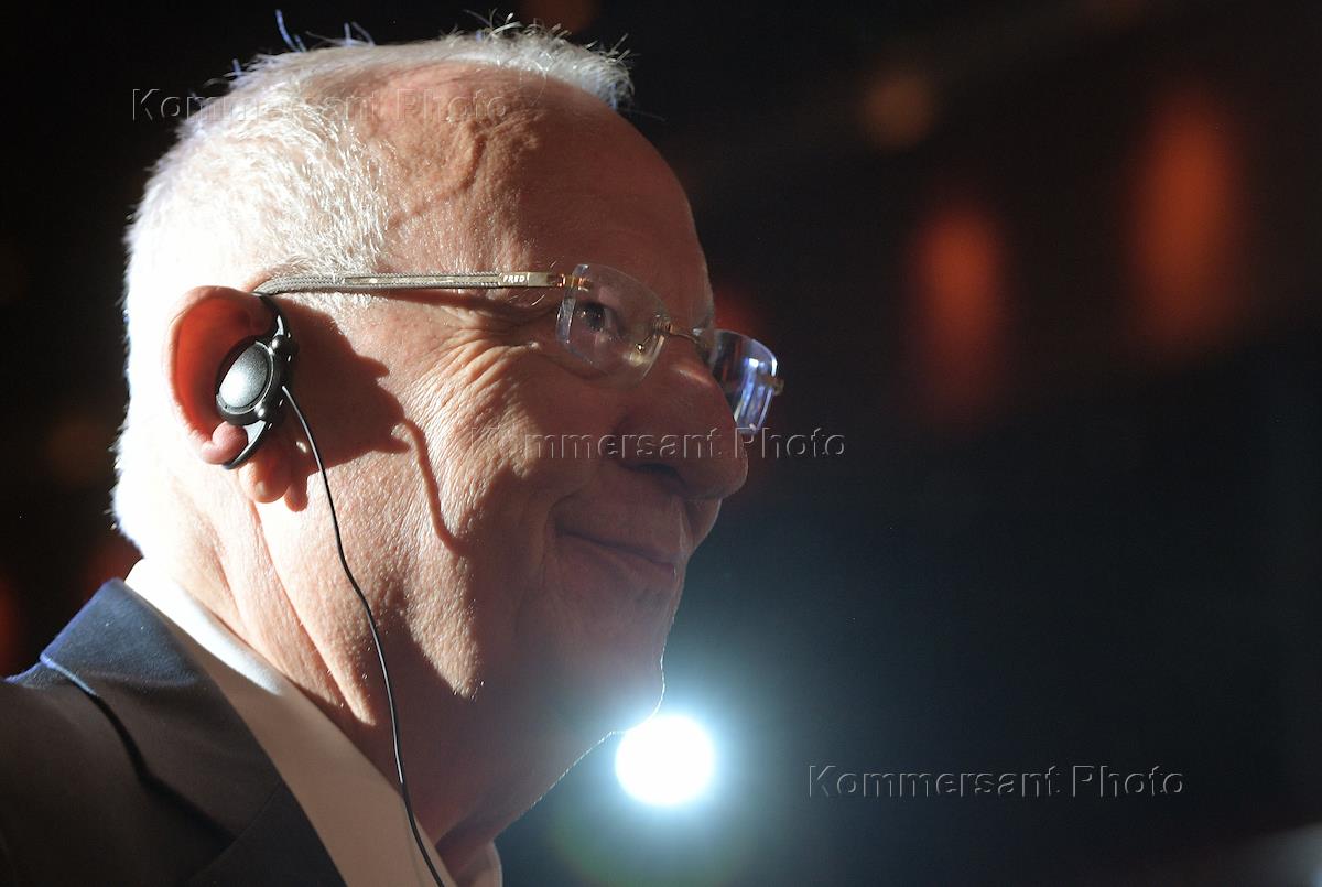 25-й благотворительный прием Российского еврейского конгресса в концертном зале "Барвиха Luxury Village". Бывший президент Израиля Реувен Ривлин во время церемонии награждения премией РЕК Global Influence Award за глобальное влияние на мир.