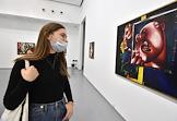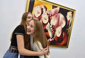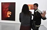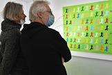 Церемония открытия 25-го сезона в Мультимедиа Арт Музее. Семь выставок, представляющих главные направления работы музея за 25 лет. Жанровая фотография. Посетители во время осмотра выставки Олега Целкова "Я не здешний, я чужой".