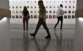 Церемония открытия 25-го сезона в Мультимедиа Арт Музее. Семь выставок, представляющих главные направления работы музея за 25 лет. Жанровая фотография. Посетители во время осмотра выставки "День за днем" группы "МишМаш".