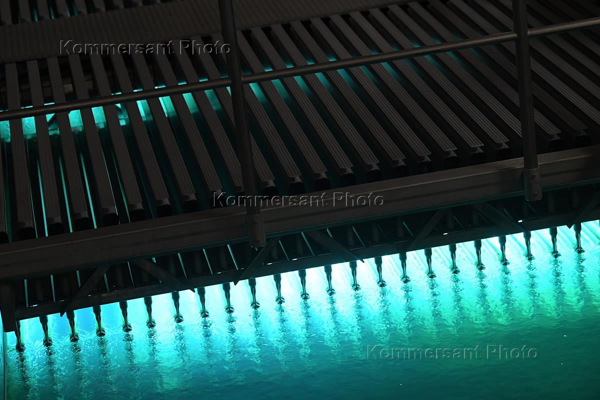 Сооружения Западной станции водоподготовки. Жанровая фотография. Ионизация воды в цехе очистки воды Западного отделения центра контроля качества воды АО "Мосводоканал".