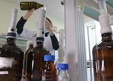 Сооружения Западной станции водоподготовки. Жанровая фотография. Сотрудница западного отделения центра контроля качества воды МВК АО "Мосводоканал" проверяет качество воды.