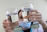 Сооружения Западной станции водоподготовки. Жанровая фотография. Сотрудница западного отделения центра контроля качества воды МВК АО "Мосводоканал" проверяет качество воды.