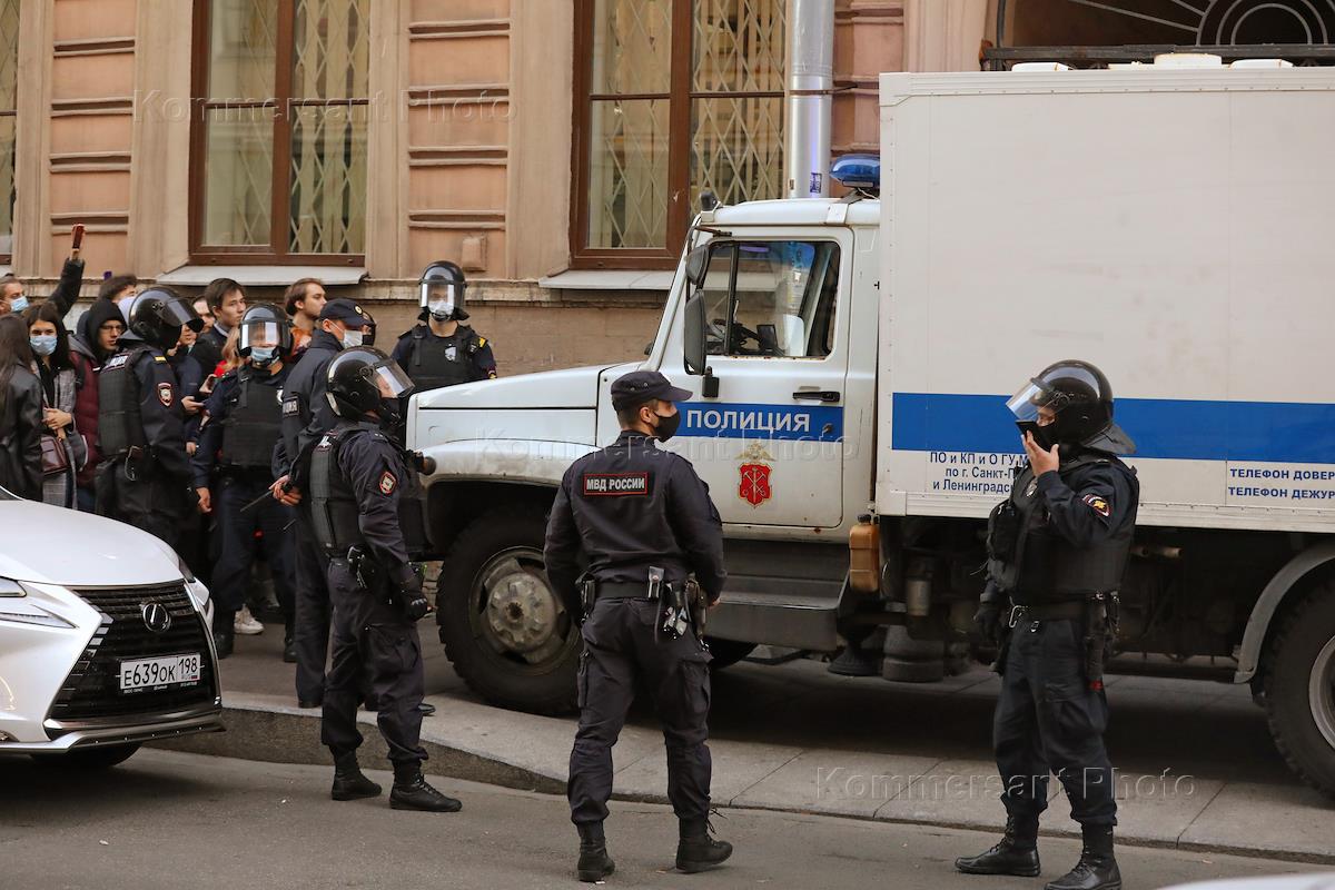 Prolongation of the measure of restraint for blogger Yuri Khovansky in the Kuibyshevsky district court. Police officers at the courthouse.