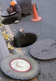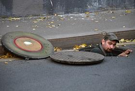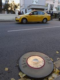 Инсталляция у здания редакции "Новой газеты". Художник Слава ПТРК установил люки в виде гильз в память об убитой 15 лет назад журналистки Анны Политковской.