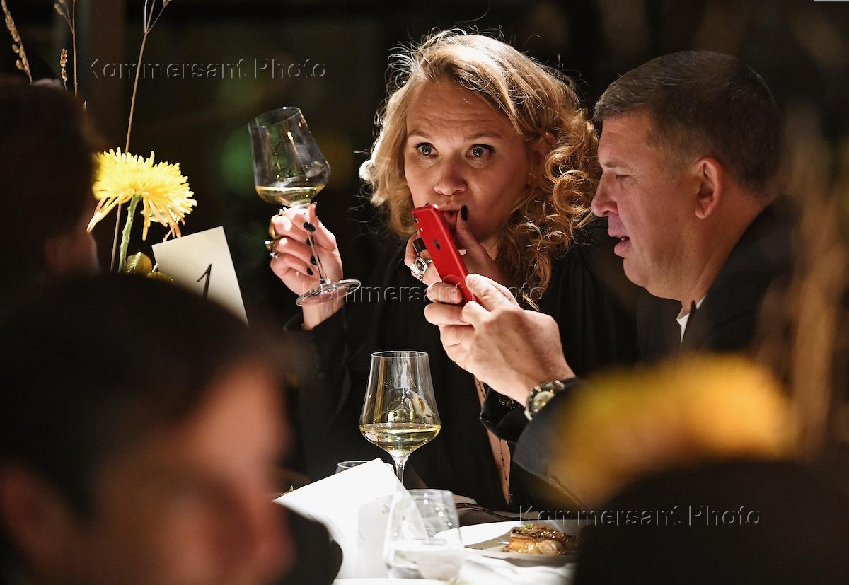 Празднование 10-летия ресторана White Rabbit в "Смоленском пассаже". Шеф-повар ресторана White Rabbit Владимир Мухин (справа) и ресторатор Ирина Зарькова (слева) во время мероприятия.