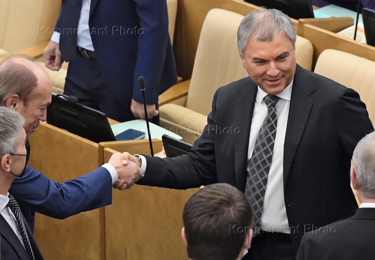 The first plenary meeting of the State Duma of Russia of the eighth convocation. Chairman of the State Duma of Russia Vyacheslav Volodin during the meeting.