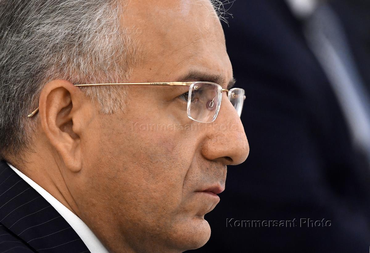 Совещание руководителей органов безопасности и разведывательных служб стран СНГ по вопросам взаимодействия спецслужб Содружества в области обеспечения безопасности и стабильности в Петровском путевом дворце. Глава Службы национальной безопасности Армении Армен Абазян во время совещания.