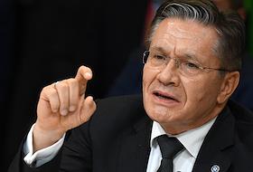 Международный форум "Российская энергетическая неделя (РЭН) 2021" в Центральном выставочном зале "Манеж". День первый. Заместитель генерального директора, руководитель департамента ядерной энергии Международного агентства по атомной энергии (МАГАТЭ) Михаил Чудаков во время пленарной сессии "Малая атомная энергетика, энергообеспечение для регионов и промышленности".