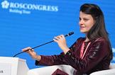 Форум "Российская энергетическая неделя" в Центральном выставочном зале "Манеж". Пленарное заседания "Перезапуская энергетику городов и сообществ: реализация энергоперехода на всех уровнях общества". Старший аналитик-исследователь Научно-исследовательский центр нефти имени короля Абдаллы (KAPSARC), участник программы "Будущие лидеры энергетики" Мирового энергетического совета (МИРЭС) Злата Сергеева во время заседания.