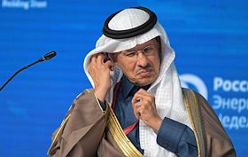 Форум "Российская энергетическая неделя" в Центральном выставочном зале "Манеж". Пленарное заседания "Будущее традиционной энергетики: готов ли мир отказаться от углеводородов? ". Министр энергетики Королевства Саудовской Аравии Абдулазиз бин Салман Аль Сауд во время заседания.