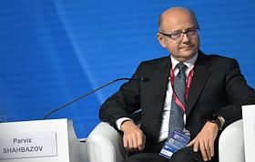Форум "Российская энергетическая неделя" в Центральном выставочном зале "Манеж". Пленарное заседания "Будущее традиционной энергетики: готов ли мир отказаться от углеводородов? ". Министр энергетики Республики Азербайджан Парвис Шахбазов во время заседания.