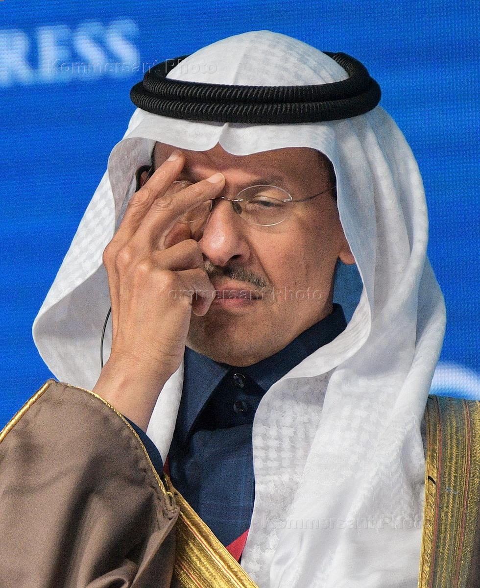 Форум "Российская энергетическая неделя" в Центральном выставочном зале "Манеж". Пленарное заседания "Будущее традиционной энергетики: готов ли мир отказаться от углеводородов? ". Министр энергетики Королевства Саудовской Аравии Абдулазиз бин Салман Аль Сауд во время заседания.