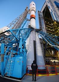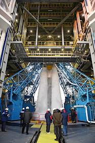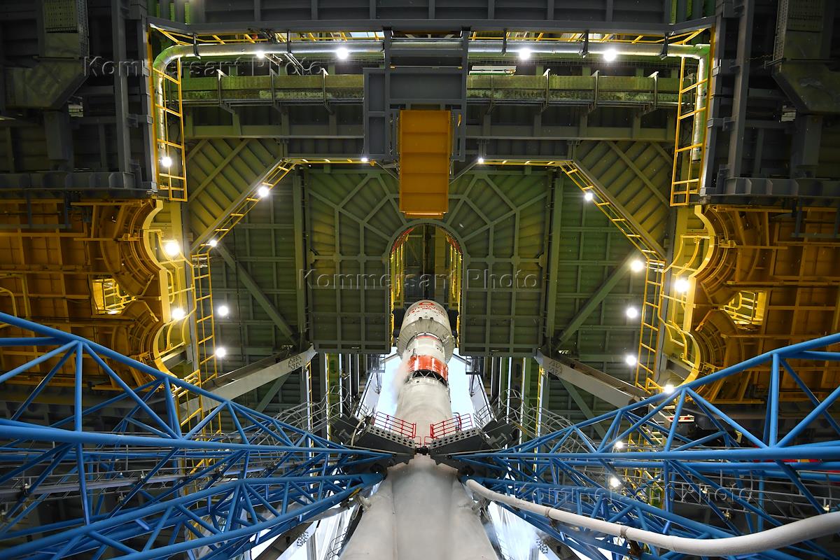 Космодром "Восточный". Подготовка к запуску ракеты-носителя "Союз-2.1б" с разгонным блоком "Фрегат" и 36 космическими аппаратами OneWeb на борту.