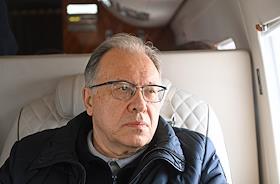 Подготовка к церемонии запуска ракеты-носителя "Союз-2.1б" с разгонным блоком "Фрегат" и 36 космическими аппаратами OneWeb на борту на космодроме "Восточный". Первый заместитель генерального директора АО РКЦ "Прогресс" — генеральный конструктор — начальник ЦСКБ Равиль Ахметов на борту самолета.