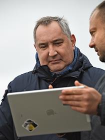 Космодром "Восточный". Церемония запуска ракеты-носителя "Союз-2.1б" с разгонным блоком "Фрегат" и 36 космическими аппаратами OneWeb на борту. Генеральный директор Государственной корпорации по космической деятельности "Роскосмос" Дмитрий Рогозин на презентации робототехнического комплекса "Маркер" в системе охраны космодрома "Восточный"