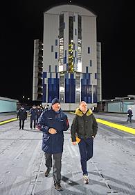 Космодром "Восточный". Церемония запуска ракеты-носителя "Союз-2.1б" с разгонным блоком "Фрегат" и 36 космическими аппаратами OneWeb на борту.
