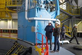 Космодром "Восточный". Церемония запуска ракеты-носителя "Союз-2.1б" с разгонным блоком "Фрегат" и 36 космическими аппаратами OneWeb на борту. Первый заместитель генерального директора АО РКЦ "Прогресс" — генеральный конструктор — начальник ЦСКБ Равиль Ахметов (слева) во время пресс-конференции перед началом церемонии.