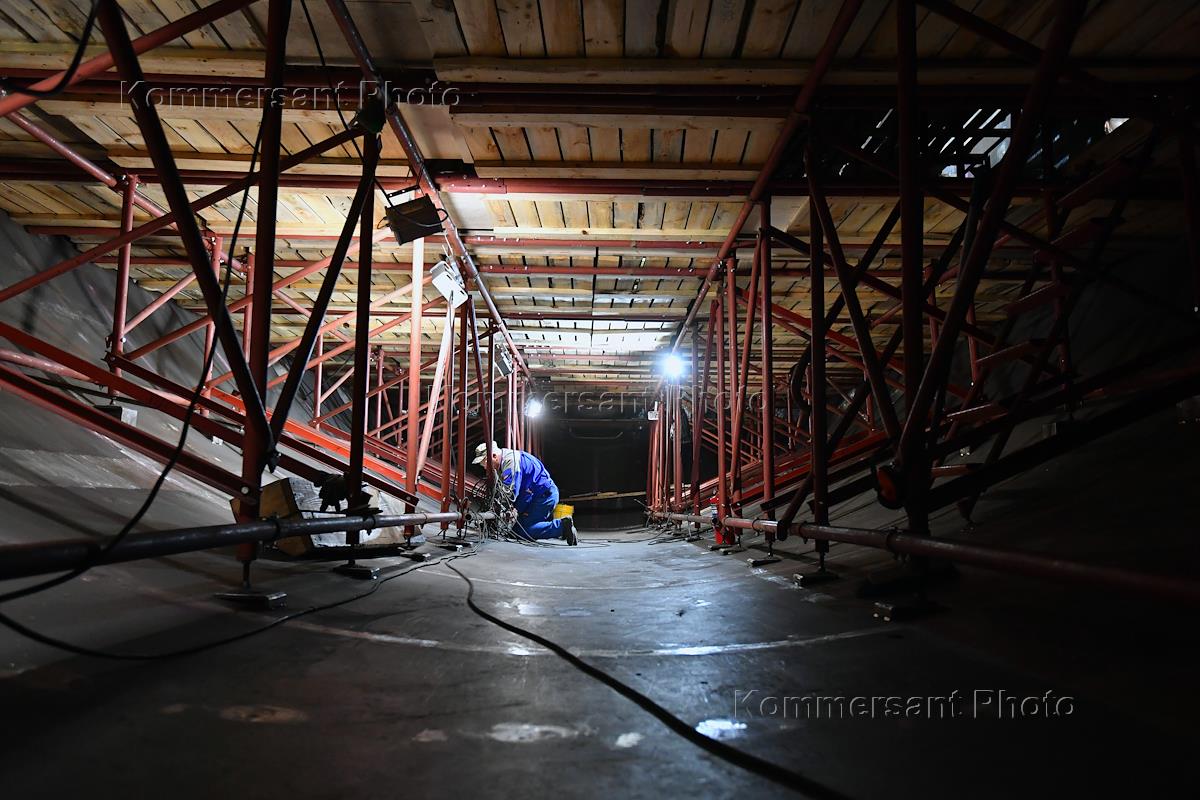 Космодром "Восточный". Специальный корреспондент ИД "КоммерсантЪ" Андрей Колесников в сборочном цехе космодрома.