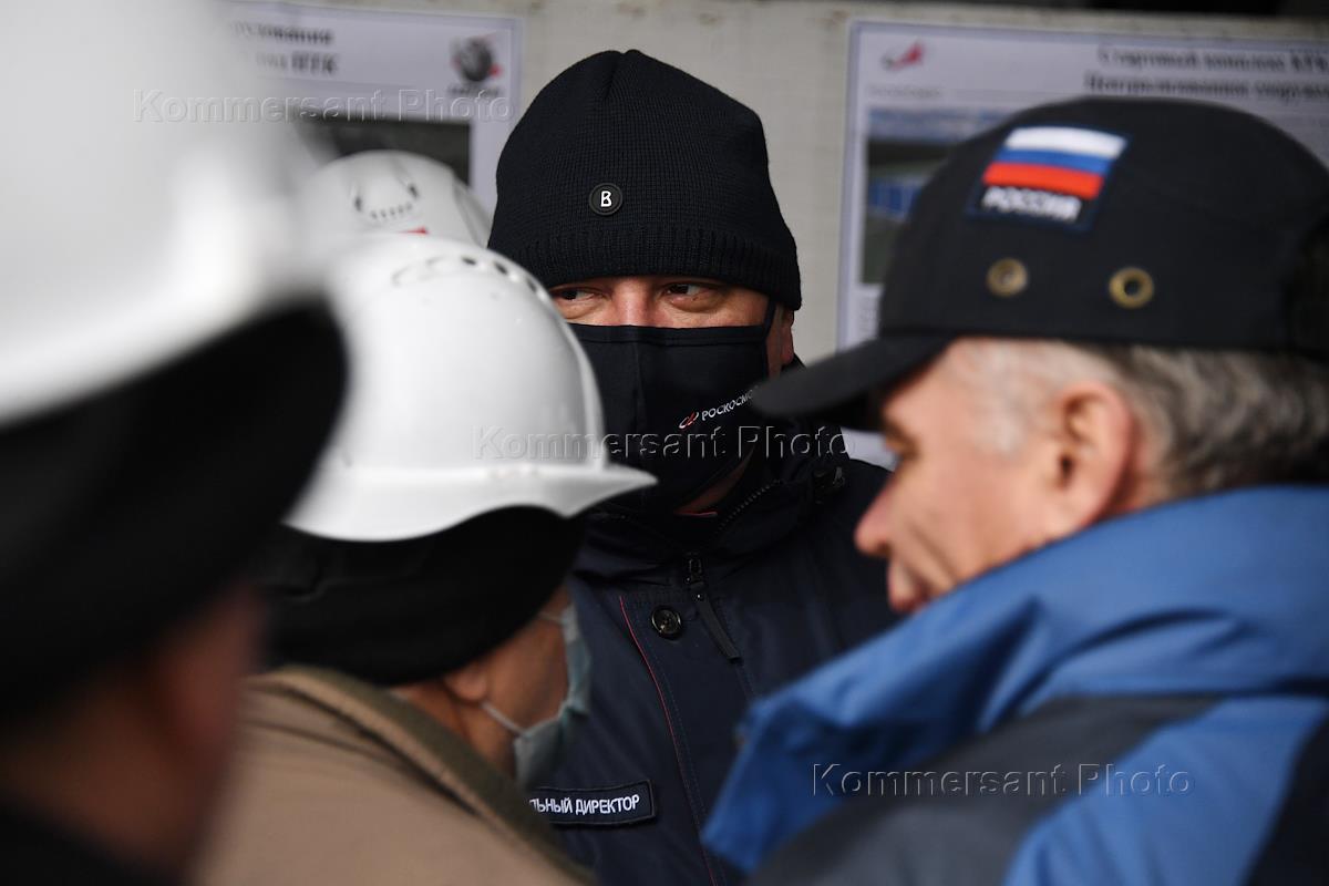 Космодром "Восточный". Генеральный директор Государственной корпорации по космической деятельности "Роскосмос" Дмитрий Рогозин во время осмотра строительства стартового комплекса для космического ракетного комплекса (КРК) "Ангара".