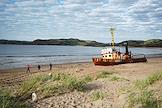Виды поселка Териберка. Жанровая фотография. Старый корабль на берегу моря.