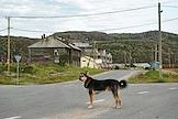 Виды поселка Териберка. Жанровая фотография. Бродячая собака на дороге.