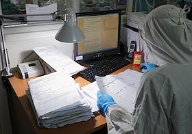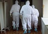 Городищенская центральная районная больница. Жанровая фотография. Работа медицинского персонала в "красной зоне", где лежат пациенты инфицированные коронавирусной инфекцией (COVID-19).