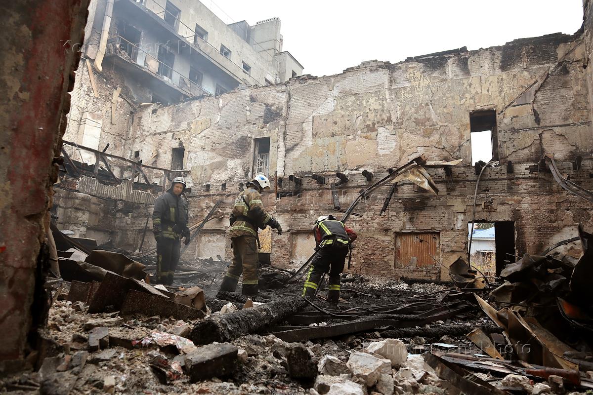 Последствия пожара в доме-коммуне "Дом чекистов" на улице Малой Покровской, дом 16.