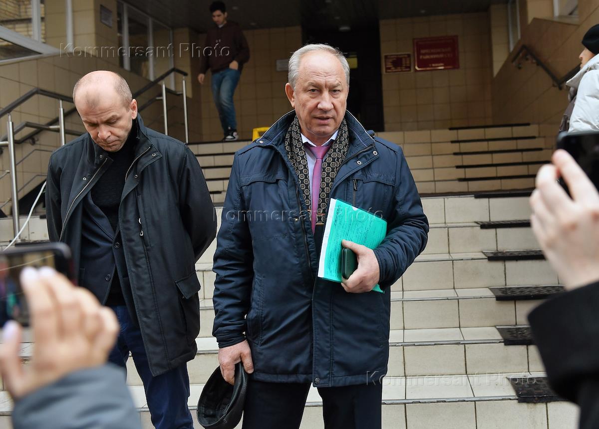 Рассмотрение первого иска из серии исков Коммунистической партии России (КПРФ) и ее членов, которые оспаривают результаты электронного голосования в Государственную думу России в столице, в Пресненском районном суде. Ситуация у суда. Первый секретарь Московского городского комитета, член президиума ЦК КПРФ Валерий Рашкин (справа) перед началом заседания суда.