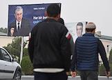 Виды города Термеза во время предвыборной компании президента Узбекистана. Жанровая фотография. Агитационный плакат на улице города.