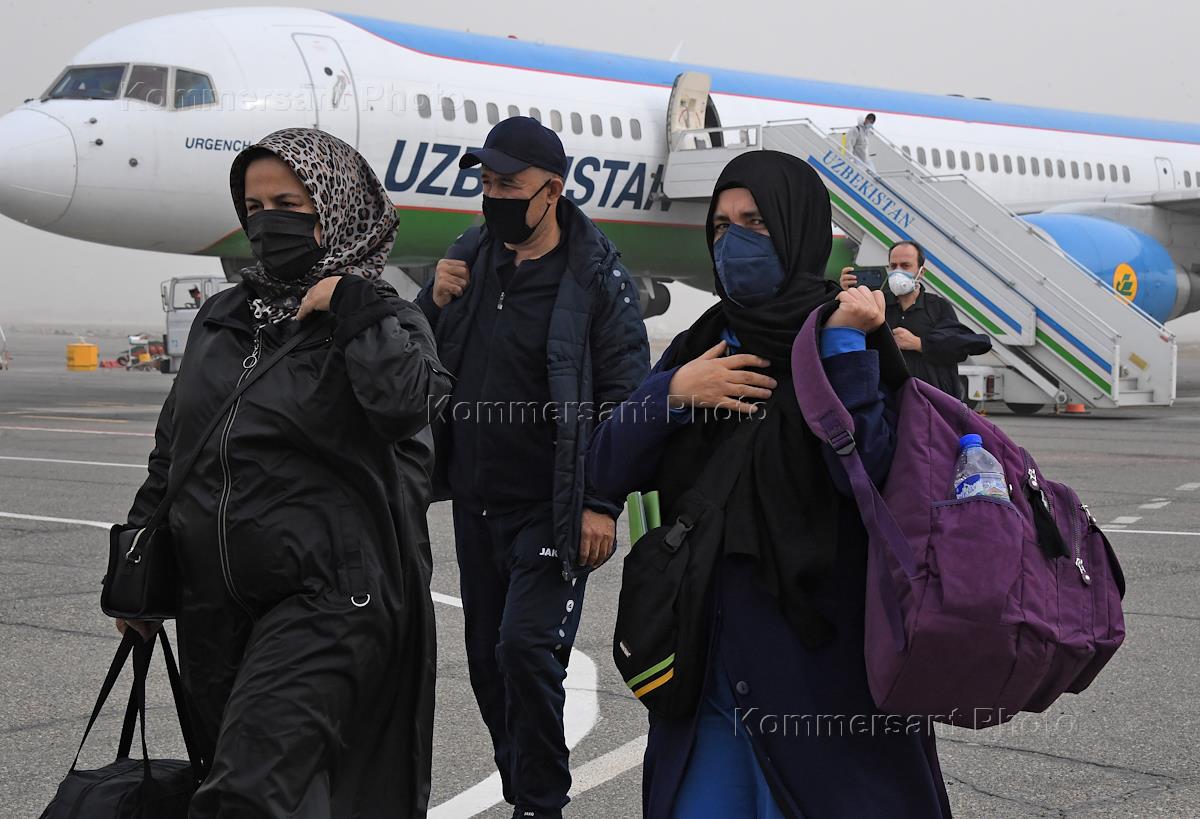 Виды Международного аэропорта города Термеза. Жанровая фотография. Пассажиры после выхода из самолета. Граждане Афганистана в аэропорта Термеза.