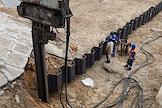 Жанровая фотография. Очередной этап работ по строительству нового моста через ерик Осинки. Установка металлических свай.