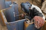 Жанровая фотография. Очередной этап работ по строительству нового моста через ерик Осинки. Установка металлических свай. Установка металлических свай. Сварщик во время работы.