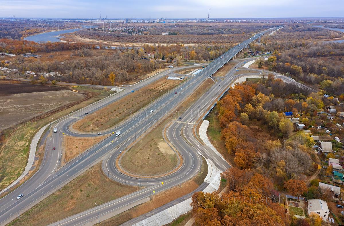 Виды Волгоградской области. Жанровая фотография. Мостовая развязка через реку Ахтуба.