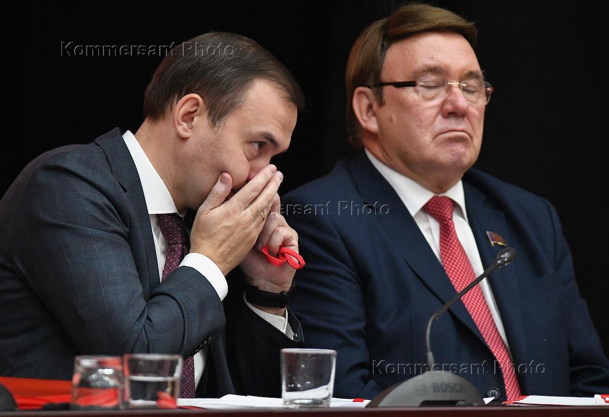 III (октябрьский) совместный пленум ЦК и ЦКРК КПРФ в Главном корпусе Оздоровительного комплекса "Снегири". Первый заместитель председателя ЦК КПРФ Иван Мельников (слева) и секретарь ЦК КПРФ Юрий Афонин (справа) на пленуме.