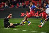 Чемпионат России по футболу. Премьер лига. 12-й тур. Матч между командами ЦСКА (Москва) и "Крылья советов" (Самара) на стадионе "ВЭБ Арена". Вратарь команды "Крылья Советов" Илья Ломаев (слева) и игрок команды ЦСКА Чидера Эджуке (в центре) во время матча.