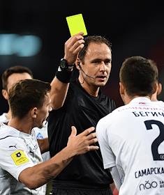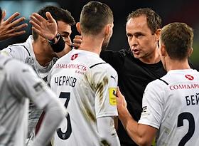 Чемпионат России по футболу. Премьер лига. 12-й тур. Матч между командами ЦСКА (Москва) и "Крылья Советов" (Самара) на стадионе "ВЭБ Арена". Главный судья Виталий Мешков (в центре) во время матча.