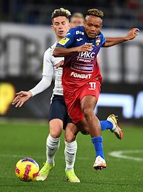 Чемпионат России по футболу. Премьер лига. 12-й тур. Матч между командами ЦСКА (Москва) и "Крылья советов" (Самара) на стадионе "ВЭБ Арена". Игрок команды ЦСКА Чидера Эджуке (справа) во время матча.