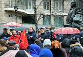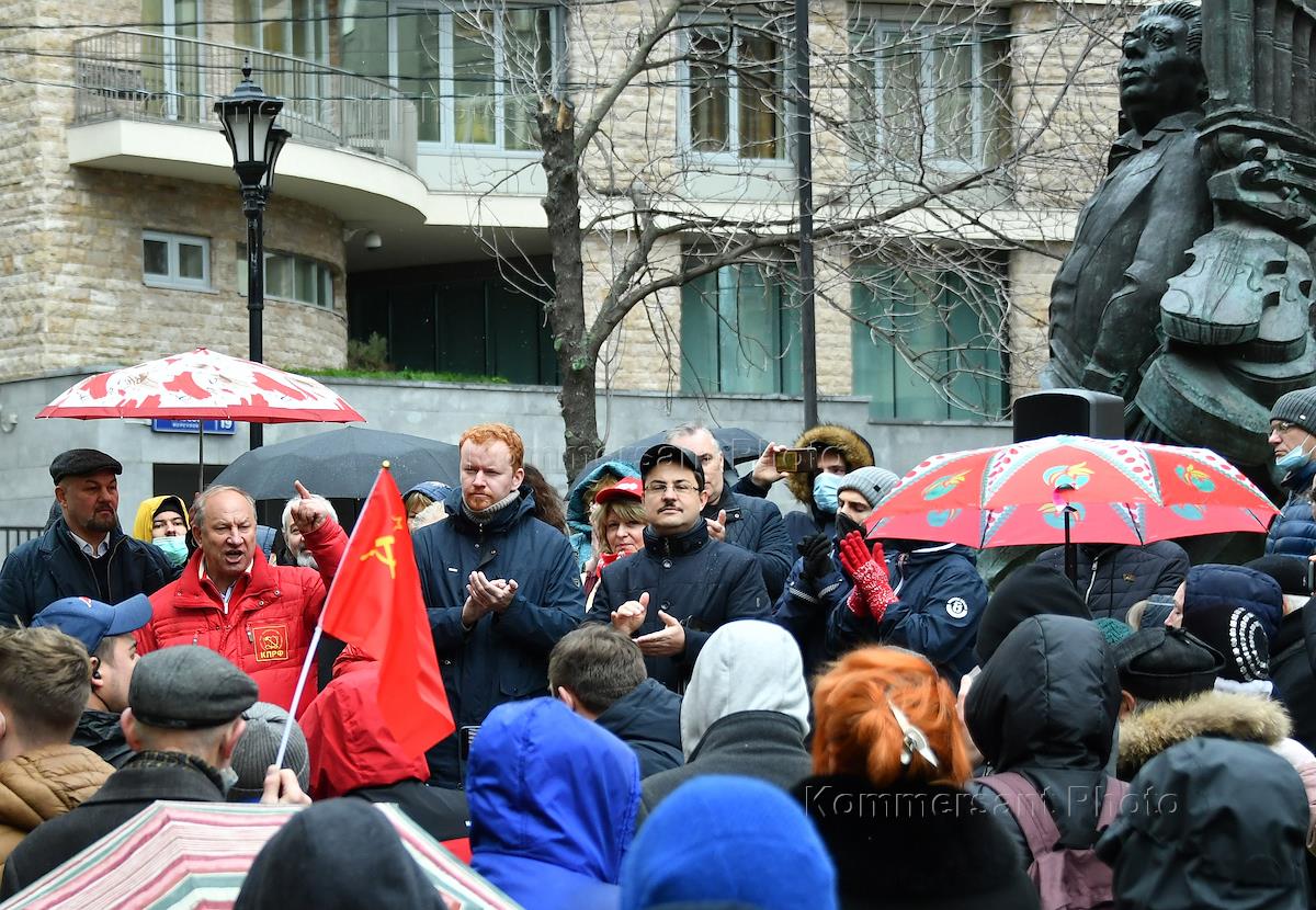 Встреча избирателей с депутатами Государственной думы (ГД) России от партии КПРФ за отмену дистанционного электронного голосования (ДЭГ) и свободу собраний прошла возле памятника Хачатуряну в Брюсовом переулке.