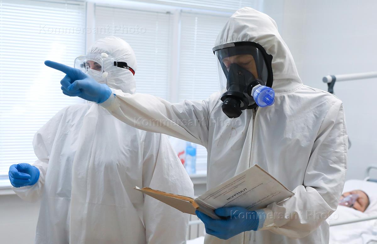 Государственное бюджетное учреждение здравоохранения "Городская клиническая больница №1 имени С.З.Фишера". Медицинские работники в "красной зоне", где проходит лечение больных с коронавирусной инфекцией COVID-19.