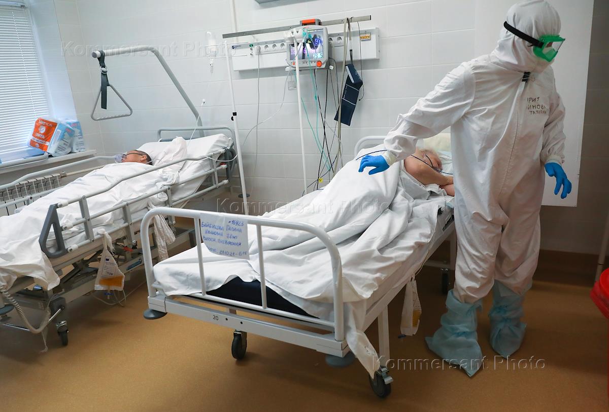 Государственное бюджетное учреждение здравоохранения "Городская клиническая больница №1 имени С.З.Фишера". Медицинские работники в палате "красной зоны", где проходит лечение больных с коронавирусной инфекцией COVID-19.