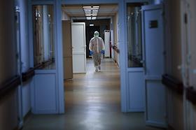 Государственное бюджетное учреждение здравоохранения "Городская клиническая больница №1 имени С.З.Фишера". Медицинский работник в коридоре "красной зоны", где проходит лечение больных с коронавирусной инфекцией COVID-19.