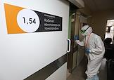 Государственное бюджетное учреждение здравоохранения "Городская клиническая больница №1 имени С.З.Фишера". Медицинский работник в палате "красной зоны", где проходит лечение больных с коронавирусной инфекцией COVID-19.