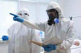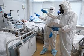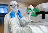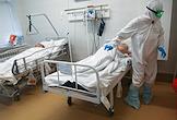 Государственное бюджетное учреждение здравоохранения "Городская клиническая больница №1 имени С.З.Фишера". Медицинский работник и пацеинт в "красной зоне", где проходит лечение больных с коронавирусной инфекцией COVID-19.